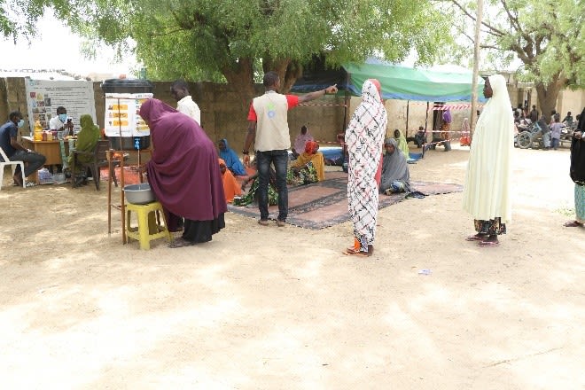 Action Against Hunger (AAH) continues to roll out risk-control measures for Covid 19 at food and cash distributions sites ensuring the implementation of the National Council for Disease Control NCDC guidelines for social distancing, regular handwashing with soap and running water as well the use of hand sanitizers.